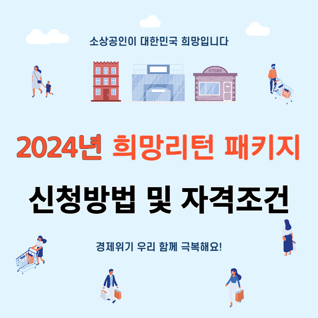 폐업 또는 폐업 예정인 소상공인들의 재기를 지원하기 위한 2024년도 희망리턴 패키지 재창업 사업화 지원 사업을 진행하고 있습니다. 지원내용 및 대상을 확인해 보시고, 재창업 및 초기 창업을 원하시는 소상공인 분들은 최대 2.2천만 원 지원해 준다고 하니 어서 빨리 신청하세요.